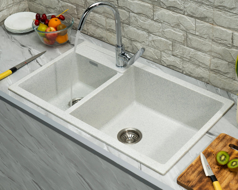 Asiatique Quartz Kitchen Sink D-302 (DIAMOND) | 32" X 19" | German Quartz Double Bowl | Top, Flush & Under Mount